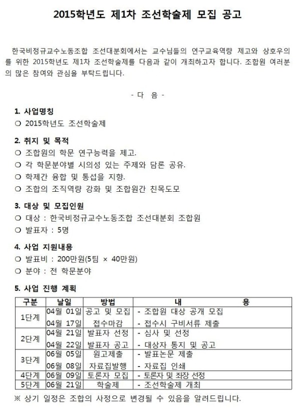 2015학년도 제1차 조선학술제 모집 공고