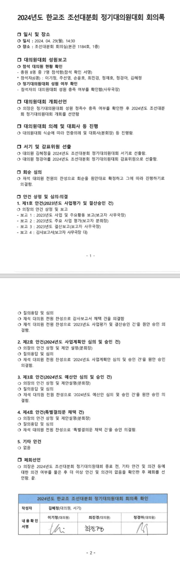 2024년도 한교조 조선대분회 정기대의원대회 회의록 페이지 정보 작성자 조선대분회 작성일24-05-17 08:51 조회758회 댓글0건 이전글 다음글 목록 본문 2024년도 한교조 조선대분회 정기대의원대회 회의록 댓글목록 등록된 댓글이 없습니다. 이전글 다음글 목록