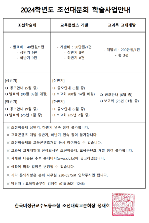 2024학년도 조선대분회 학술사업안내 페이지 정보 작성자 조선대분회 작성일24-05-21 08:53 조회778회 댓글0건 이전글 다음글 목록 본문 2024학년도 조선대분회 학술사업안내 댓글목록 등록된 댓글이 없습니다. 이전글 다음글 목록