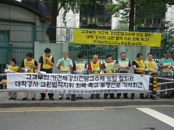 하나. 이주호 신임 교과부 장관은 이 모든 일에 상당한 책임이 있다. 당장 교과부의 개악 안을 철회하고 비정규교수노조와 근본적 대책 수립을 위해 대화하라!