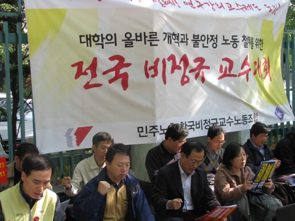 2010년 10월 22일(금) 12시 20분부터 14시 20분까지 전국의 비정규 교수들이 개악 안을 내 놓은 교과부 앞(광화문 정부종합청사 후문 앞)에 모여 시간강사제도 철폐, 기간제강의전담교수제 반대, 법적 교원인 연구강의교수제 쟁취를 외쳤습니다.