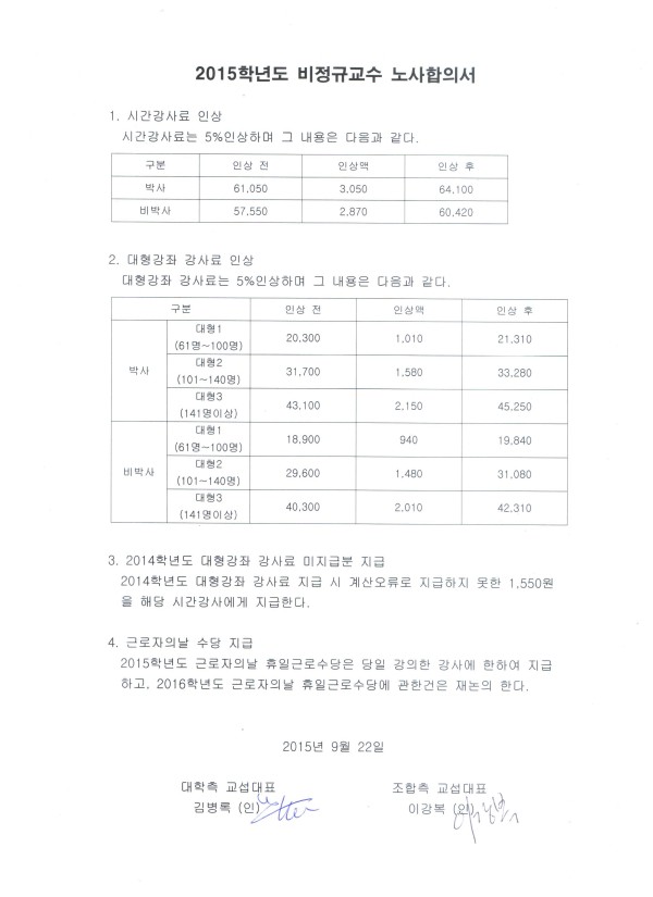 2015학년도 비정규교수 노사합의서