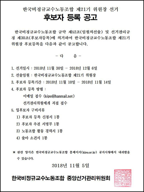 한교조 위원장선거(제21기) 후보자 등록공고문 페이지 정보 작성자 조선대분회 작성일18-11-09 11:13 조회367회 댓글0건 이전글 다음글 목록 본문 한교조 위원장선거(제21기) 후보자 등록공고문 댓글목록 등록된 댓글이 없습니다. 이전글 다음글 목록