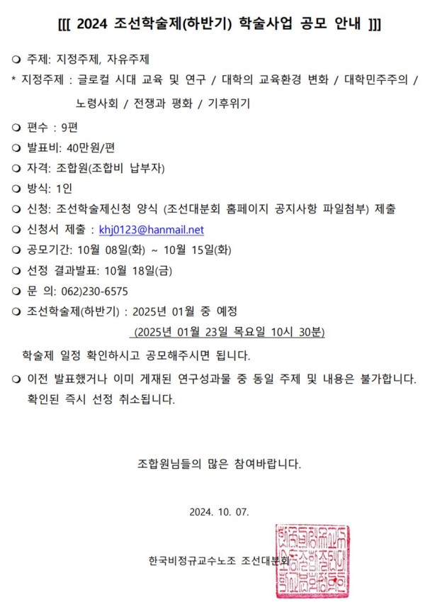 작성자 조선대분회 작성일24-10-07 09:14 조회464회 댓글0건첨부파일