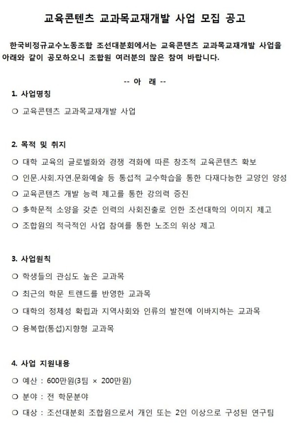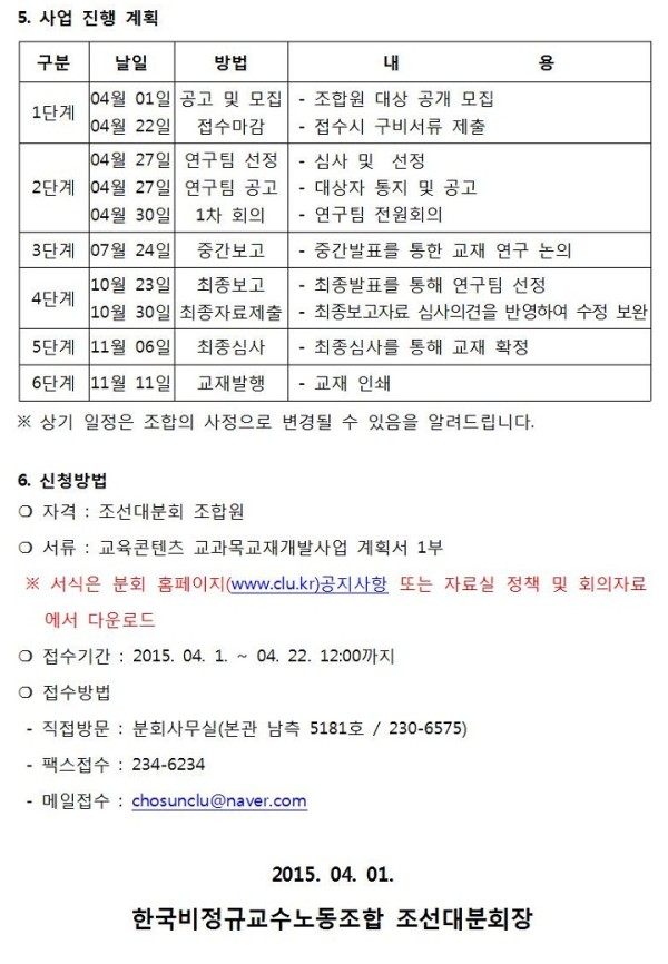 2015년 교육콘텐츠 교과목교재개발사업 모집 공고