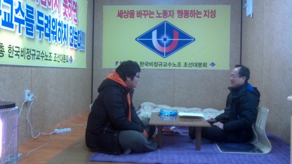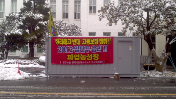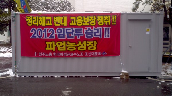 파업농성장 그림-비정규교수가 파업하지 못하면 대학은 비정규교수를 두려워하지 않는다!!!