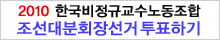 Ⅱ단계: 조선대분회 홈피에 가면 초기화면 하단에 움직이는 배너 '2010 한국비정규교수노동조합 조선대분회장 선거 투표하기"가 있습니다. 이를 클릭하십시오