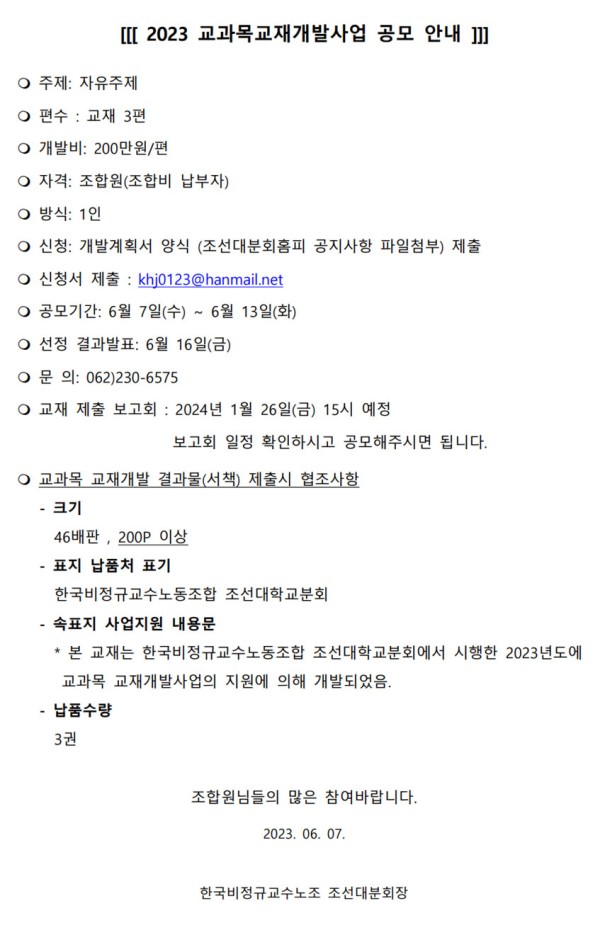 ※ [공지사항748] 2023년 조선대분회 교육학술연구사업 안내