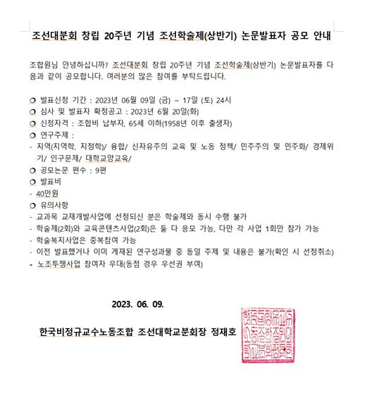 작성자 조선대분회 작성일23-06-09 08:13 조회939회 댓글0건첨부파일