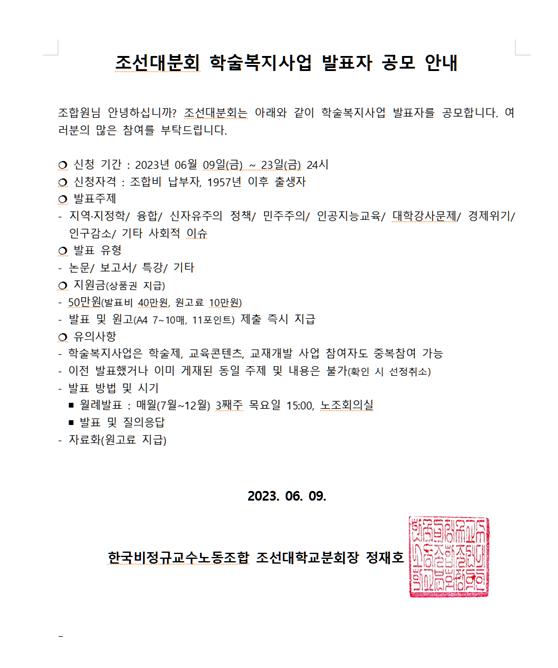 양식- 2023년 조선대분회 학술복지사업 발표 신청서.hwp