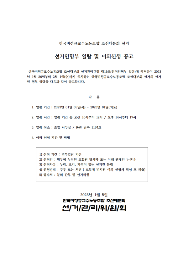 선거인 명부 열람 및 이의 신청 페이지 정보 작성자 조선대분회 작성일23-01-05 23:47 조회389회 댓글0건 이전글 다음글 목록 본문 감사합니다 댓글목록 등록된 댓글이 없습니다. 이전글 다음글 목록